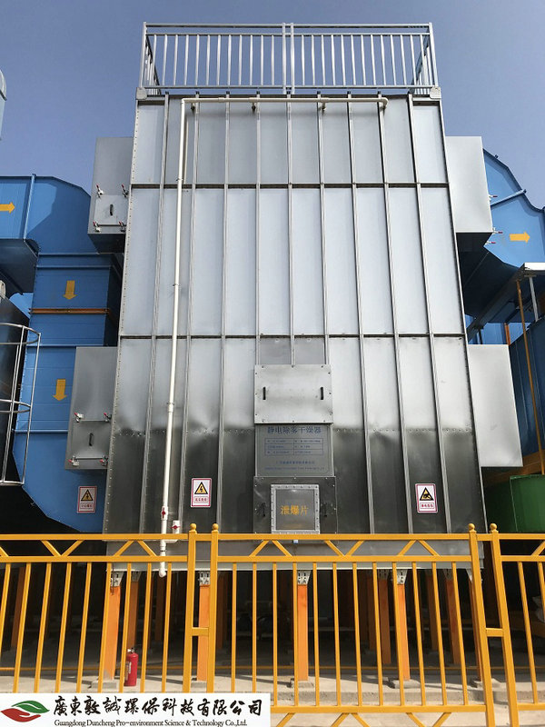 有机废气首先进入高效脱漆塔,其中沾性气体和粉尘被分离出来,并且通过加药中和有机废气;接着进入湿式静电除尘装置,在装置电场的作用下,带有固体颗粒与液化粉尘的污染空气将被电离并带上负电,在电场对离子引力和重力双重作用下,尘埃和空气分离,尘埃浸入阳极水膜水中,空气从侧面排出,实现除尘净化;经过前面的两道除油漆及除尘装置,废气中的漆雾及灰尘的去除率已经达到99%以上,再进入蓄热式催化氧化燃烧炉。催化燃烧装置内设加热室,启动加热装置,进入内部循环,当热气源达到有机物的沸点时,有机物从吸附剂内跑出来,进入催化室进行催化分解成CO2和H2O,同时释放出能力,利用释放出的能量再进入吸附箱脱附时,加热装置完全停止工作,有机废气在催化燃烧室内维持自燃,循环进行,直至有机物完全从吸附剂内部分离,至催化室分解,吸附剂得到了再生,有机物得到催化分解处理。此项组合工艺已申请国家专利,并已获得国家受理。